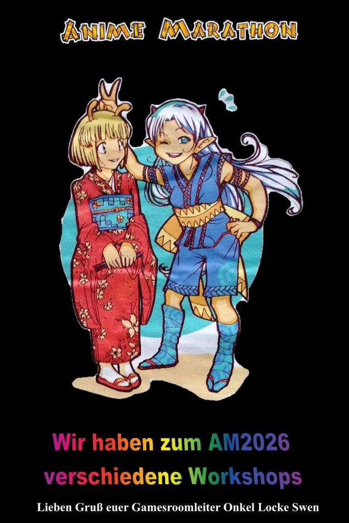 Anime Marathon 2026 JPRuehmann, 5. März 2026 verschiedene Workshops. Lieben Gruß, euer Gamesroomleiter Onkel Locke Swen. 1 0 Allgemein Anime-Marathon